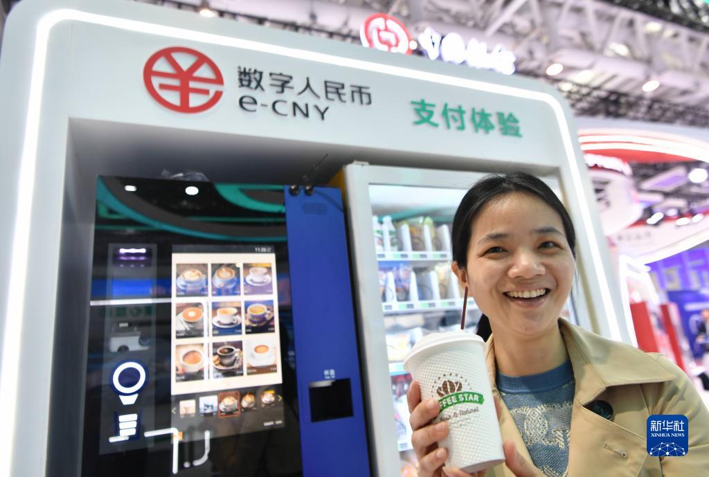 4月26日,在第六届数字中国建设成果展览会现场,一名观众展示用数字人民币购买的咖啡。当日,第六届数字中国建设成果展览会在福建省福州市开幕。本届展览作为第六届数字中国建设峰会的重要组成部分,从数字基础设施、数据资源、数字经济、数字政务等11个方面,多角度展示各部门、各地方数字化发展创新实践以及数字中国建设进展和成效。本届成果展为期5天。 新华社记者 魏培全 摄