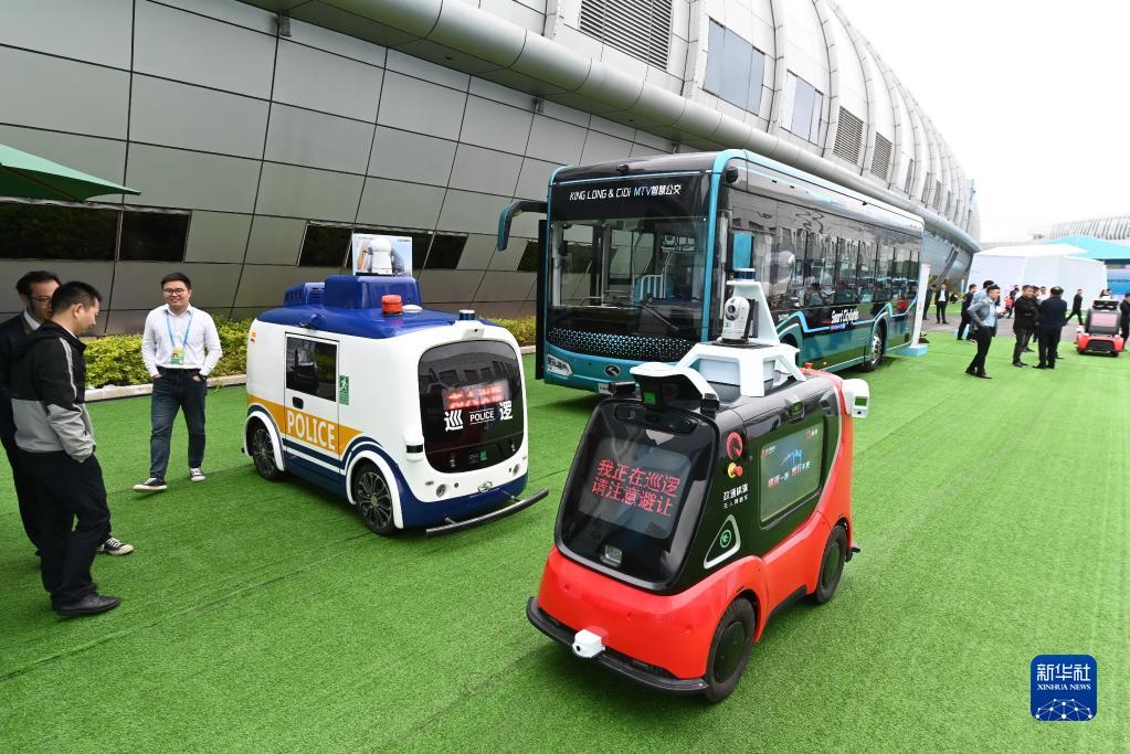 4月26日在第六届数字中国建设成果展览会上拍摄的多种智慧车辆。 新华社记者 林善传 摄