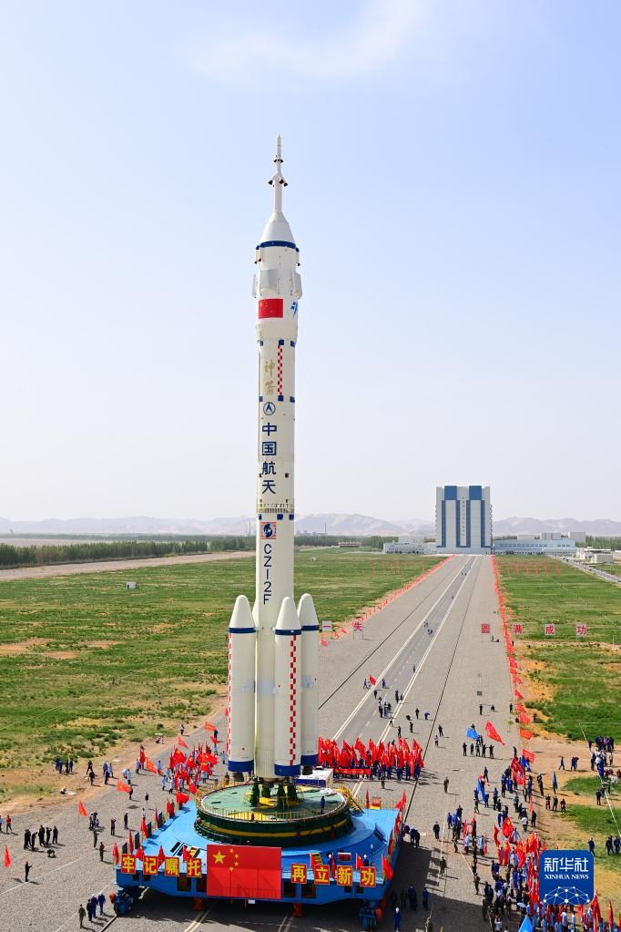 5月22日,神舟十六号载人飞船与长征二号F遥十六运载火箭组合体准备转往发射场。新华社发(汪江波 摄)