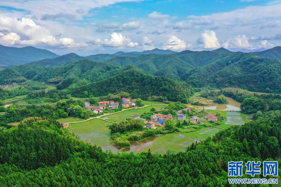 近日,航拍江西省抚州市乐安县增田镇小池村秀美乡村画卷。新华网发 黄煜 摄