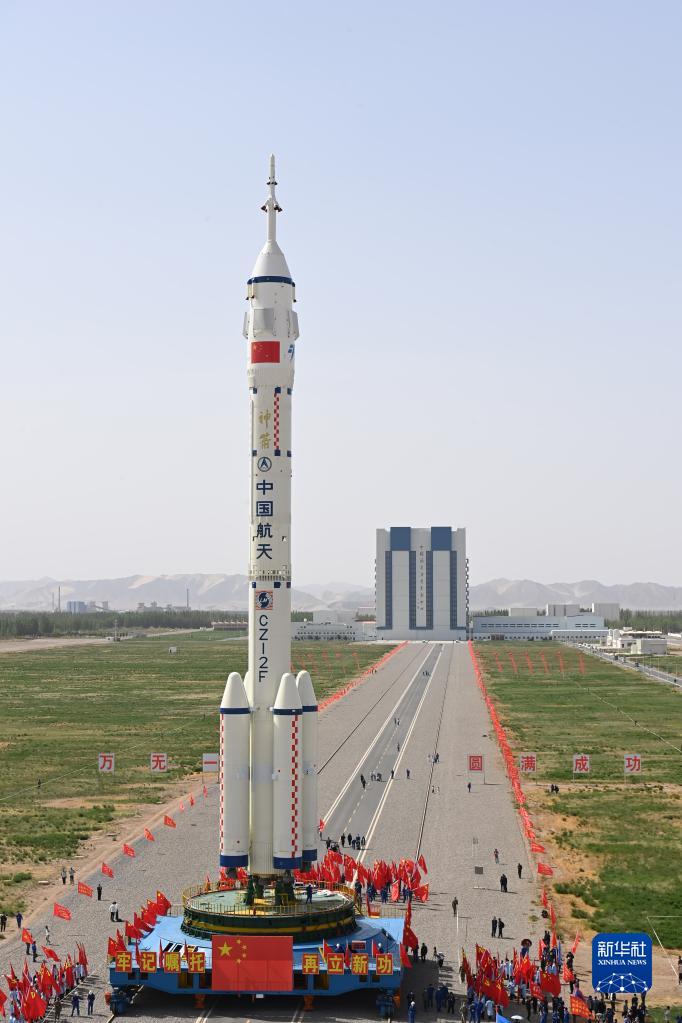 5月22日,神舟十六号载人飞船与长征二号F遥十六运载火箭组合体准备转往发射场。新华社发(汪江波 摄)