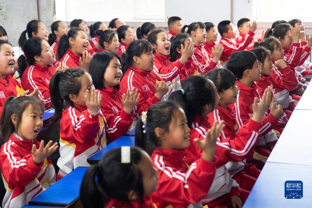 5月29日,在黑龙江省安达市任民镇中心小学,音乐班的孩子在练习合唱。新华社记者 谢剑飞 摄