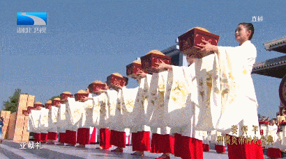 大殿圣门缓缓开启,炎帝神农像显现在海内外华夏儿女面前。祭祀人员手捧“五谷”“玉帛”“爵”,向始祖行初献礼、亚献礼、终献礼,以传统三献礼祭祀先祖,“歌、乐、舞”相结合以告祭。