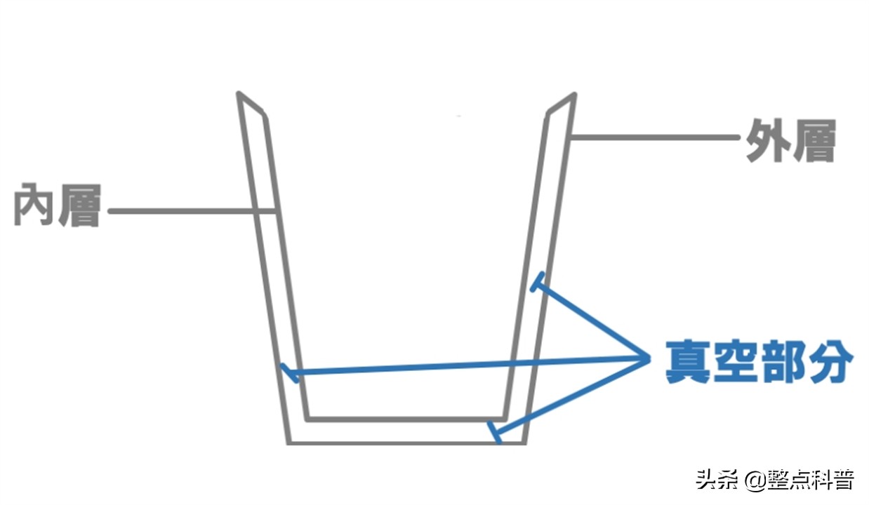 保温杯的内胆一般是双层结构的,内胆和杯身的两层是焊接在一起的,两层中间留出一个密封状态的空间,并将这个空间抽成真空的环境。